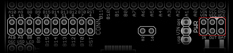| IN | PWR | YES | - | Connects Voltage Regulator in to VIN | Max. 5 Volt |
