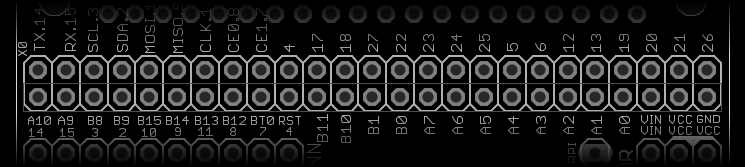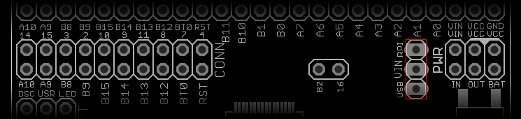 JTAG HeaderMost of the pins on this header are also on the X1 header right above it. They're pins used for SWD or JTAG in all its incarnations and pin standards. Solder male pins on here and you can easily probe them from the outside without removing any addon boards (caps). Note that BAT is actually VCC (3.3V) if you have the BAT/VCC jumper on the PWR header. If you want to use a battery, you want that jumper removed. You can connect the battery either on this pin now, or on the BAT pin on the PWR header. In situations where the RST button is hard to reach, you can temporarily short the 2 right-most pins of this header to reset the board. They're NRST and GND. Think 'conductive material'. Like a paperclip, screwdriver, keys etc. ![]() | |||||